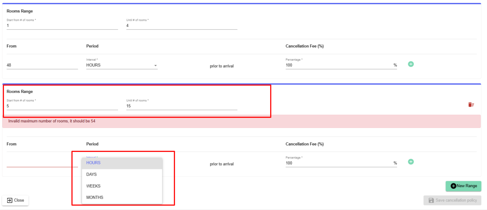 It is possible to put up different ranges on the number of rooms or the time range when the booking is cancelled.