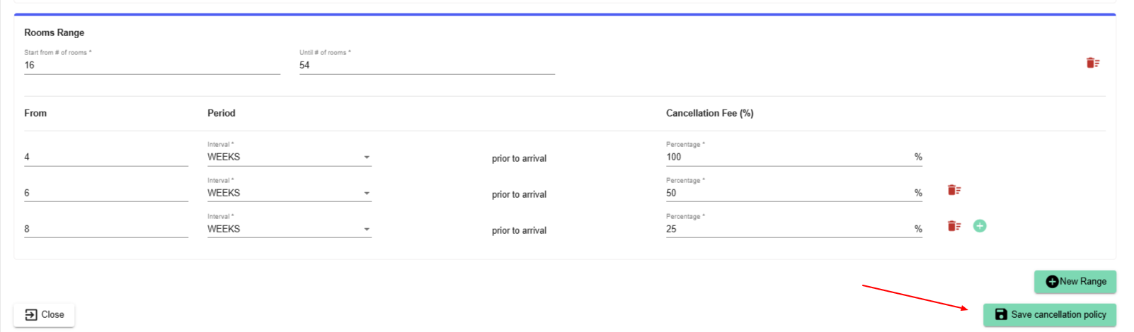 If the cancellation policy is valid for all number of rooms the property has to offer on Travia please press Save cancellation policy.
