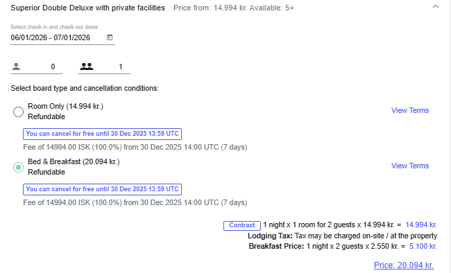 Properties in Iceland, can activate a feature in Travia, should include or exclude lodging tax.