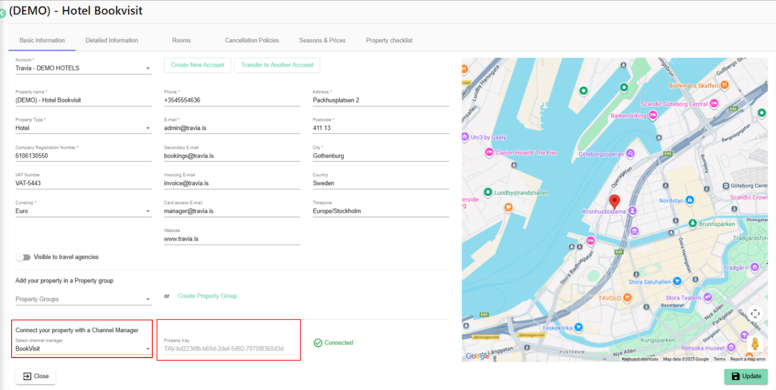 5. Please inform BookVisit once the mapping is finished. They will activate the connection and synchronize rates, inventory, restrictions with Travia.