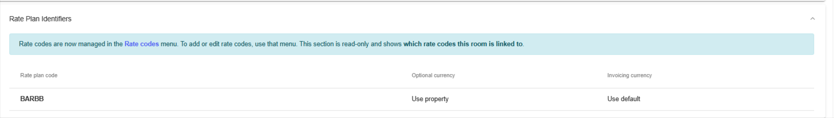 The section in the room setup is a read-only and shows which rate codes the room is linked to.