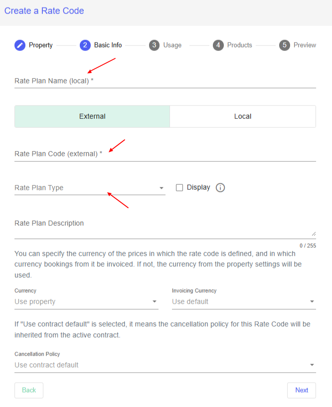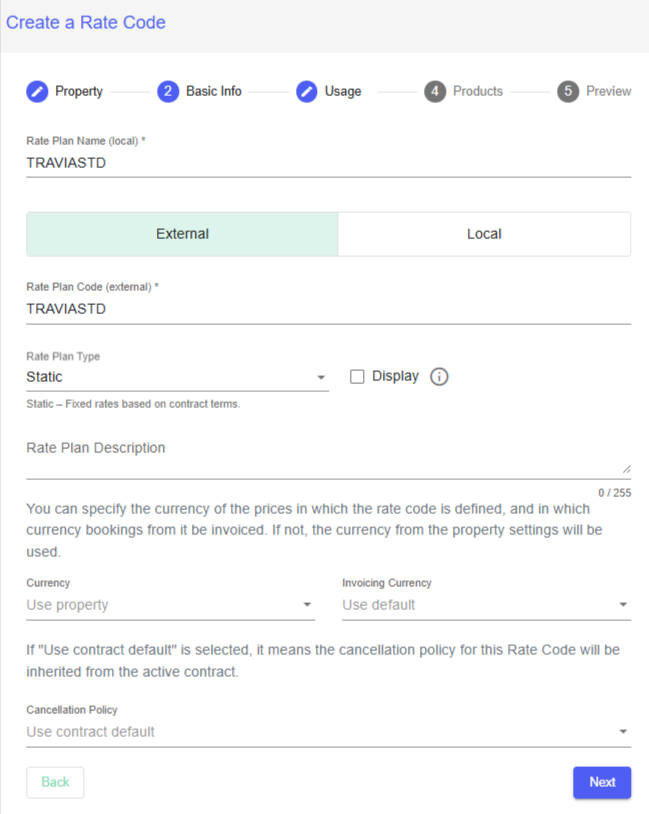 Fill out the necessary information. Name of the rate plan, locally and externally, and you can choose what type it is - dynamic, static or unspecified.