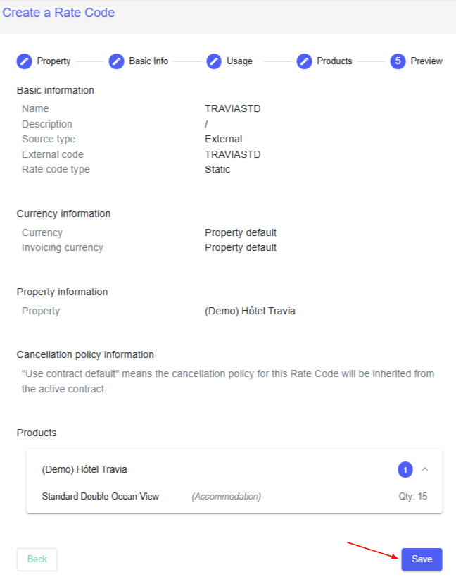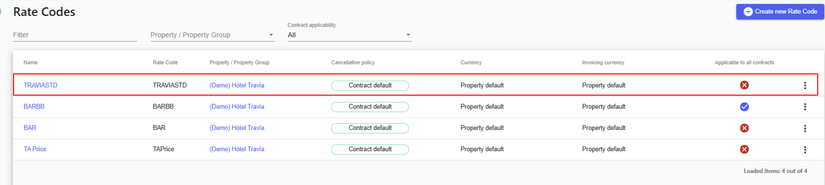 When the Rate Code section is opened, an overview of all rate codes created for the property will appear.