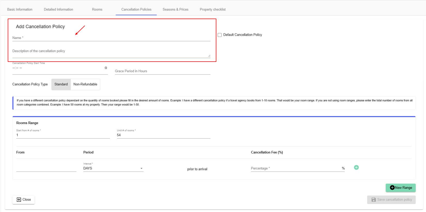 2. Settu nafn á afbókunarskilmálann og stutta lýsingu.