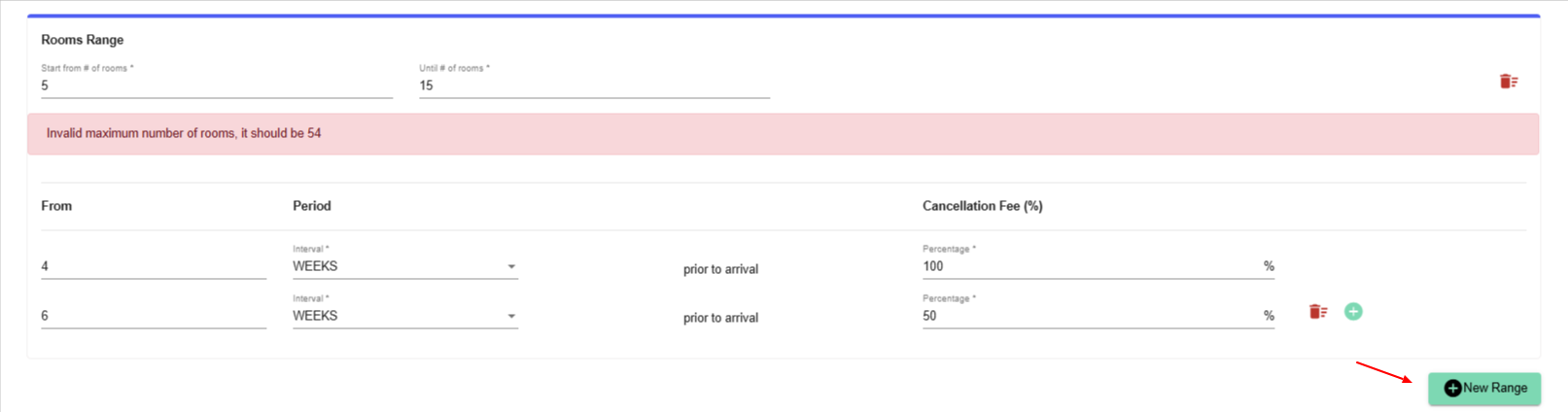 Til að bæta við skilmálum fyrir restina af herbergjafjöldanum ýtt á New Range.